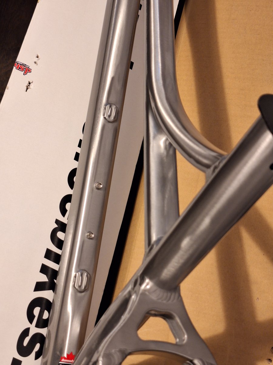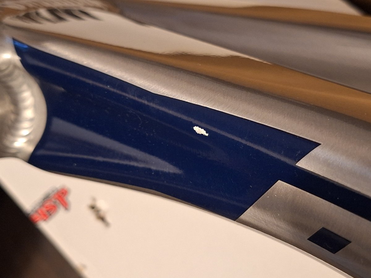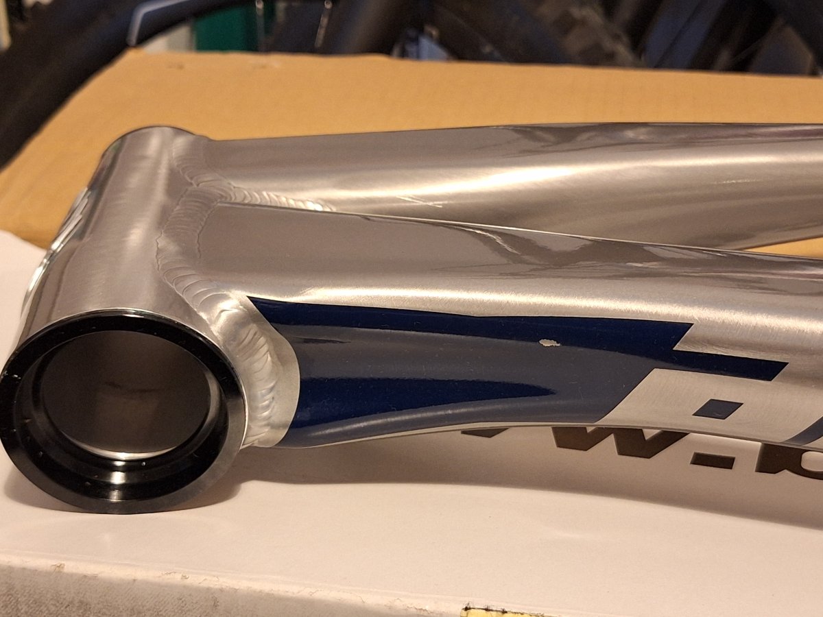 - Cena obniżona z uwagi na zadrapanie malowania od spodniej strony ramy - zdjęcia niżej - zadrapanie ma wielkość 2,5mm x 2mm, jest powierzchowne i nie wpływa w żaden sposób na jakość i kontrukcję materiału ani właściwości jezdne. Nie podlega reklamacji. Zadrapanie powstało podczas mocowania ramy do stojaka na czas targów. Zadrapanie nie podlega gwarancji.