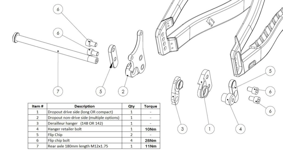 Dropout Kit - Generation 2 - 26"/29" - 12x148 Boost - Bolt On Axle - Compact